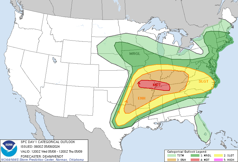Washington, D.C. reached the 90 degree mark on Thursday for only the first time this month, but that is about to change in a big way as an extended hot spell is coming to the Mid-Atlantic region. The hot stretch begins early next week, but before we get there we’ll have to deal with possible strong-to-severe thunderstorms later today and early tonight and these will be followed by a comfortable Father’s Day weekend with lower humidity.