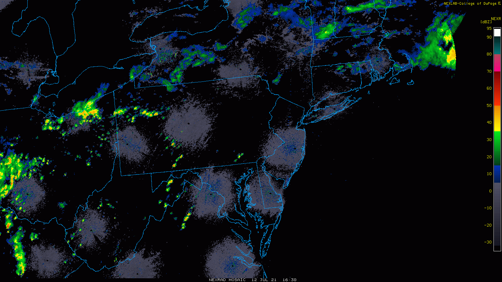 Thunderstorms are firing up at this hour across the interior Mid-Atlantic and can impact the DC-to-Philly-to-NYC corridor later today and tonight. Images courtesy College of DuPage, NOAA