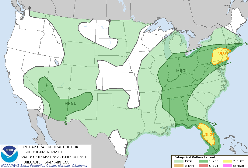 1:45 PM (Monday) | ***Late day and evening thunderstorms can be on the strong-to-severe side in the I-95 corridor with heavy rainfall, frequent lightning and damaging wind gusts***