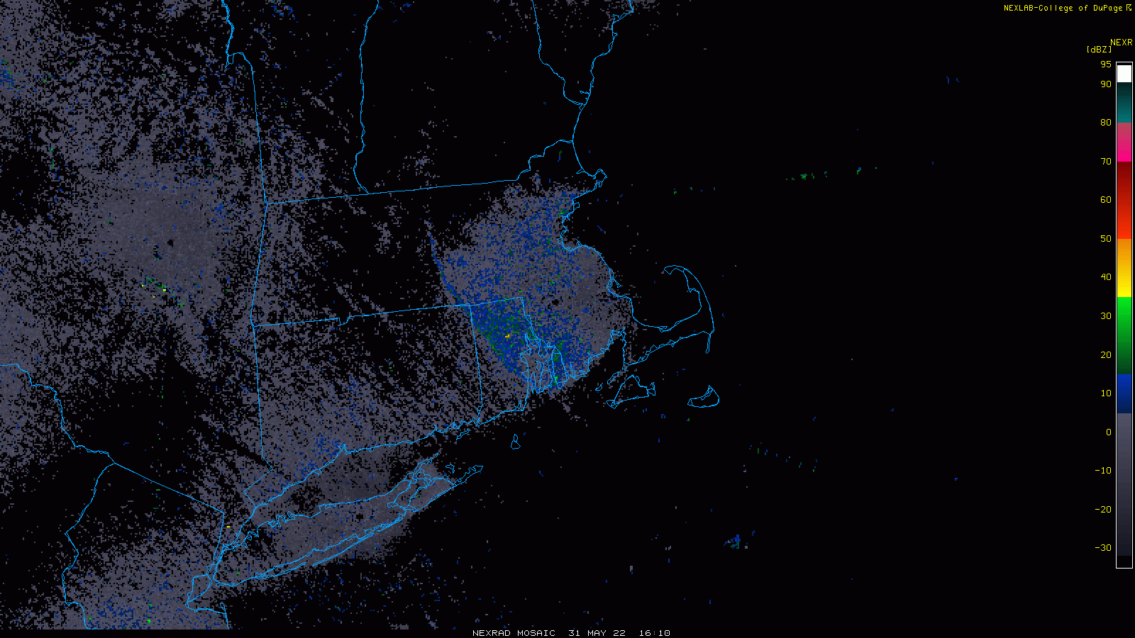A back door cool front can be detected in this early afternoon radar loop of the Northeast US moving in a northeast-to-southwest direction. Maps courtesy NOAA, College of DuPsge