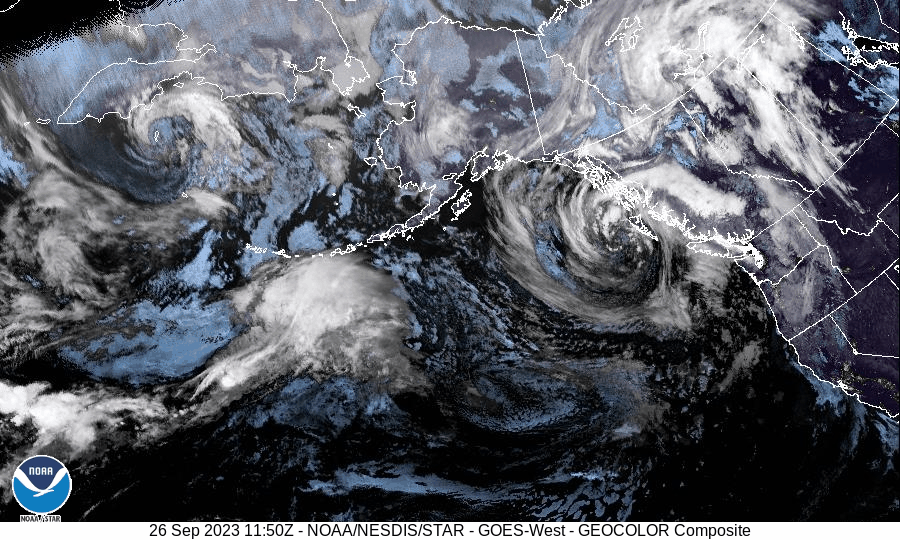 An active jet stream over the northern Pacific Ocean will bring multiple systems into the Pacific NW in coming days. Images courtesy NOAA/GOES-West