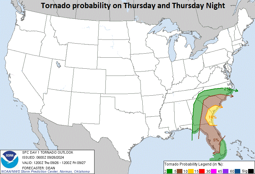After landfall, Hurricane Helene will continue on a general northward track into the state of Georgia where impact is likely to be quite significant featuring hurricane-force wind gusts, excessive rainfall amounts and power outages. And a particularly vulnerable region for significant impact will be the southern Appalachians (upstate Georgia, upstate South Carolina, western North Carolina) where strong and persistent upsloping winds will enhance upward motion and potentially result in massive rainfall amounts of as much as 1-2 feet and severe flash flooding conditions. In addition to the threat of powerful winds and torrential rainfall, tornadoes will be likely during this tropical weather event; especially, on the right side of the northward-advancing storm to include portions of northern and eastern Florida, eastern Georgia, and southeastern South Carolina.