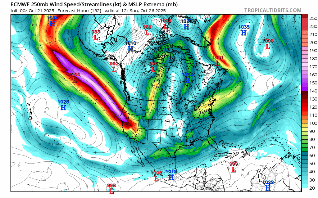 **A powerful jet streak, intense blocking, cold air intrusion, and a likely Hurricane (Melissa)...ingredients for an energetic weather pattern later next week/weekend**