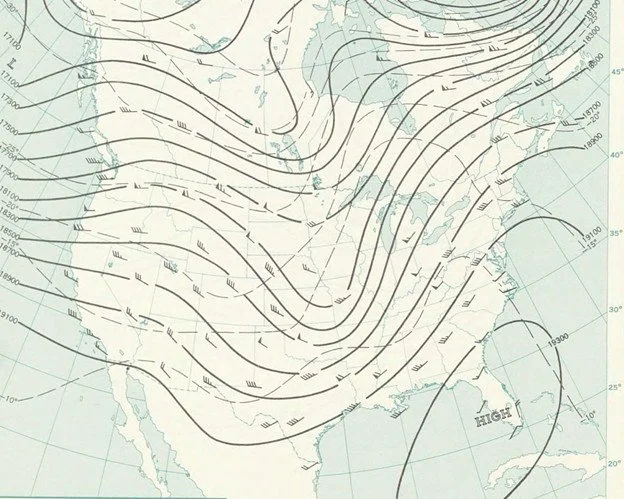 The surface weather map shown here was from noon on November 22nd, 1963, just 30 minutes before President Kennedy was assassinated. A band of rain and thunder moved through Dallas in the early morning hours before clearing skies arrives late in the morning. Map courtesy NOAA archives