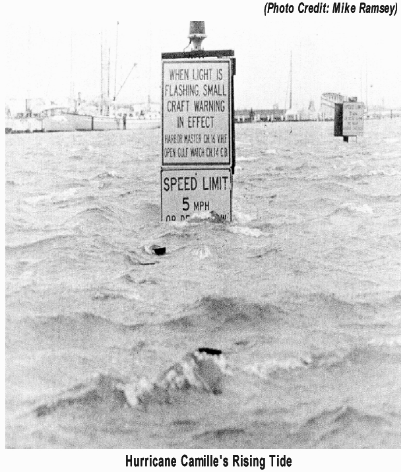 On August 17th, Hurricane Camille reached category 5 status and was located about 250 miles south of Mobile, Alabama. Gulf states were now in crisis mode in preparation for landfall in what had become a monster hurricane. The last Air Force reconnaissance aircraft readings were made on the afternoon of the 17th and a central pressure of 901 millibars was measured along with a maximum surface wind gust of over 200 mph. There was only one other time that a central pressure had been measured this low, in the 1935 Labor Day hurricane which ended up crossing over the Florida Keys between Miami and Key West. As landfall approached in the northern Gulf coastal region, the easterly winds ahead of Camille generated a storm surge through the marshes of southeastern Louisiana. Meteorologists warned that “never before has a populated area been threatened by a storm as extremely dangerous as Camille”. A mass evacuation emptied the coastal towns all along the Gulf coast and those that stayed likely perished during the storm (there were rumors of “hurricane parties”, but there weren’t any survivors to recall them).