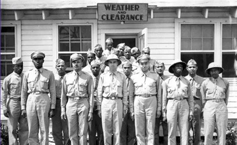 The Staff of the Tuskegee Weather Station circa 1944. Air Force Weather History Office, Air Force Weather Agency, Offutt Air Force Base, Nebraska (Credit: U.S. Air Force, 557th Weather Wing)