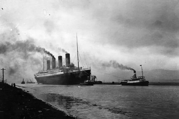 The RMS Titanic being pulled by tugs as it is leaving Belfast shortly before her disastrous maiden voyage of April 1912