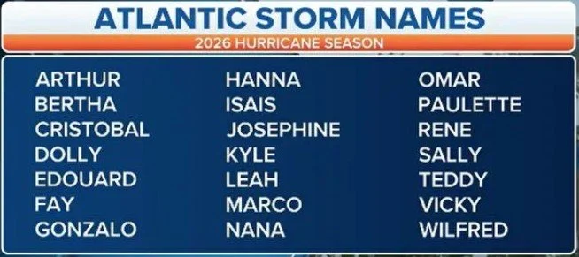 A list of names to be used during the 2026 Atlantic Basin tropical season for the named tropical storms/hurricanes.